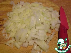 Обжариваем лук до золотистого цвета, добавляем грибы, обжариваем эту смесь минут 10, иногда помешивая, чтобы не пригорало.
