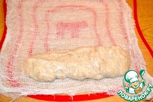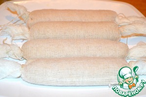 Скатайте фарш в цилиндр, плотно и аккуратно заворачивая в марлю.