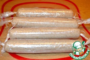 Также можно завернуть колбаски в пищевую пленку.