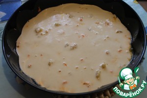 На начинку выливаем тесто. И отправить в разогретую до 180°С духовку на 40 мин