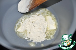В глубоком сотейнике на сливочном масле обжариваем муку 2 минуты.
