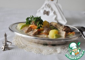 Бланкет - рагу из мяса: телятины, ягнятины, курицы, рыбы и даже овощей, тушеное в белом бульоне или в простой воде со сливками и приправами. Бланкет занимает очень важное место во французской кухне, т. к. в свое время он стал символом нового класса – буржуа. Предлагаю Вам рецепт от французского шеф-повара, в оригинале он называется "Бланкет из мольвы со сморчками", но о мольве я даже не слышала, сморчков у нас тоже нет, поэтому я заменила на окуня с шампиньонами.