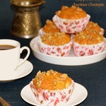 2. Разлить тесто по формочкам, сверху посыпать рублеными орехами и поставить в разогретую до 180 градусов духовку на 20 минут, потом снизить температуру до 160 и печь ещё 20 минут (это смотря у кого какая духовка. У меня они бистро прихватываются сверху, а в середине недопекаются поэтому я снижаю температуру) Готовность проверить зубочисткой.