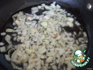• Лук порезать не большими кубиками и обжарить на растительном масле.