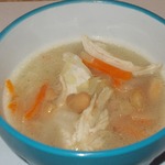 Вынуть курицу, мясо разобрать на волокна. Количество зависит от вашего желания, для нужной вам густоты супа. Мне хватило двух ног.