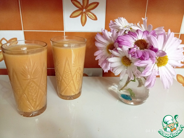 Очень приятный получился коктейль! Чуточку пряный, нежно-оранжевый!