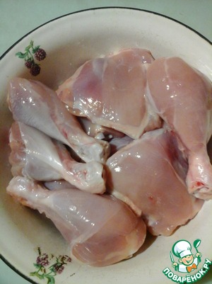 • С кусочков курицы снять кожу.