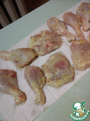 • Куски курицы обсушить от маринада.