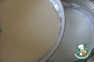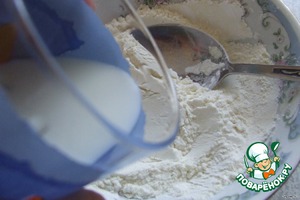 В муку добавить постепенно 0,5 стакана холодного молока. -