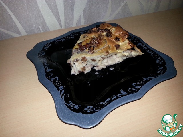 Изюм в пироге мало чувствовался может быть потому, что изюм был светлый и замачивался в ликeре (в отсутствие рома).