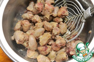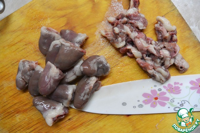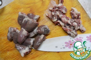 Сердечки промыть, обсушить и обрезать прожилки.