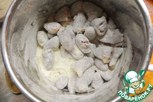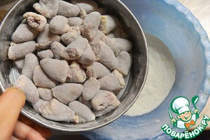 Поместить в сито и хорошенько отряхнуть, чтобы осталась легкая "глазурь".