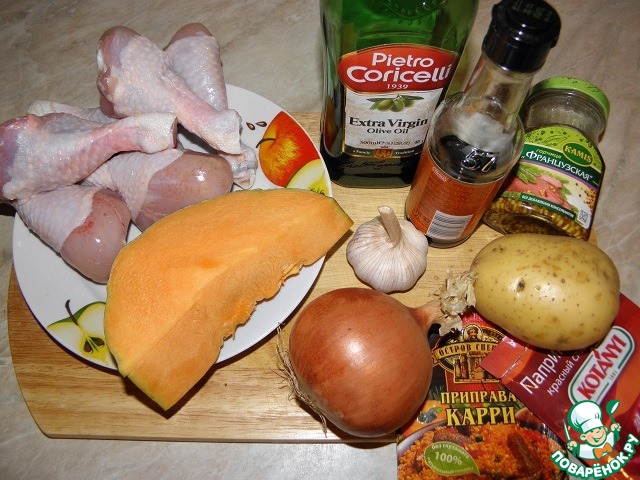 Ингредиенты для «Курица, запеченная с тыквой и картофелем»:
