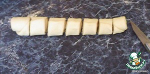 Делим его на несколько частей. Каждую раскатываем в прямоугольник.