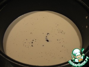 Готовим крем. Ставим на огонь молоко с разрезаным стручком ванили и доводим до кипения. Можно использовать ванильный сахар.