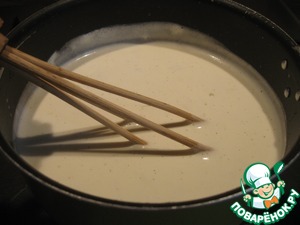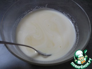 Смешиваем вилкой сахар с крахмалом и с желтками, затем добавляем в них сливки.