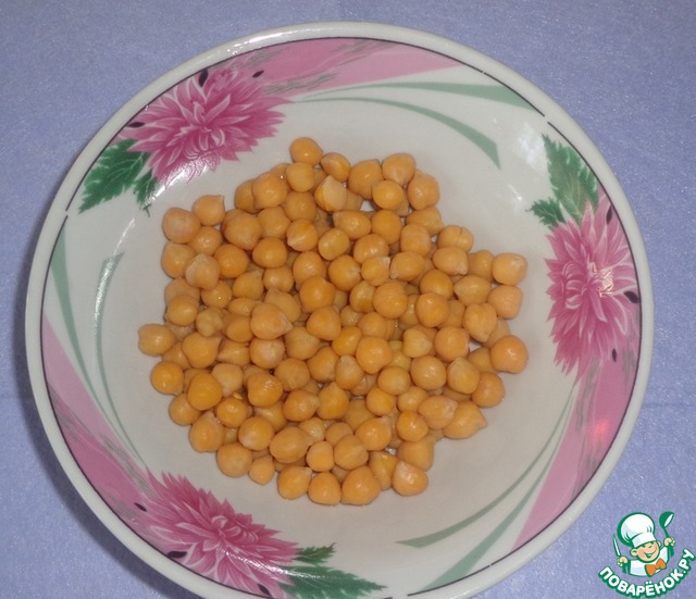 Нут предвартельно замочить в воде на ночь, а затем отварить до готовности.