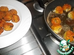 Чуть влажными руками сформировать маленькие шарики величиной с грецкий орех.. Обвалять в панировочных сухарях.