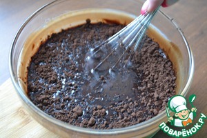 Вводим по одному желтку в шоколадную массу. Миксуем.
