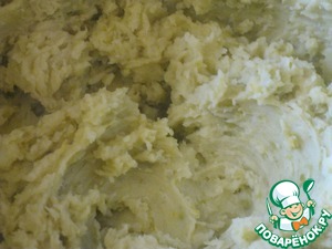 Готовый картофель размять. Добавить соль, цедру лимона, натёртую на мелкой тёрке, сливочное масло. Перемешать с гороховым пюре. -