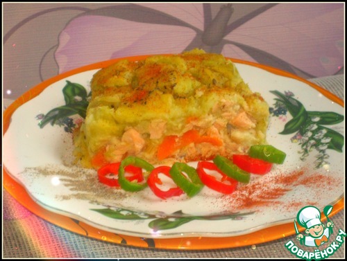 Вкусно,не "вау!" ,просто вкусно.Общее количество пюре,на мой взгляд, завышено,рыба мало чувствуется,или нужно было брать форму побольше,но тогда и слой рыбы будет тоньше.короче в соотношении рыба:пюре,что-то пошло не так.