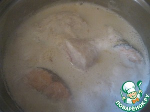 В кипящее молоко опустить рыбу и варить 10 мин. Рыбу вынуть, молоко не выливать. Разобрать рыбу на небольшие кусочки. Если есть кости, удалить.