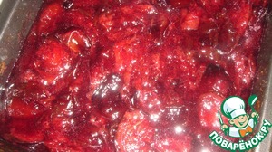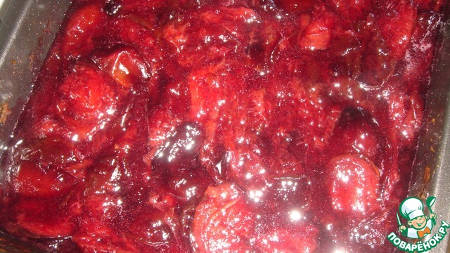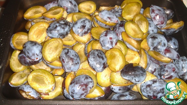 Если утром сливы не дадут сок, налить 100 гр воды. Противень со сливами поставить на медленный огонь в духовку. Периодически помешивать и следить, чтобы не убежало. На это у меня ушло примерно 1 час, но здесь надо смотреть на состояние слив: они должны пропитаться сиропом и развариться.