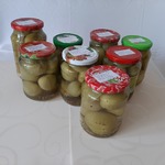 Банку перевернуть крышкой вниз, тепло укутать и дать полностью остыть день-два. Банки спокойно хранились у меня всю зиму в шкафу на кухне. Начинали открывать обычно в конце ноября, чтобы месяц хотя бы они помариновались.