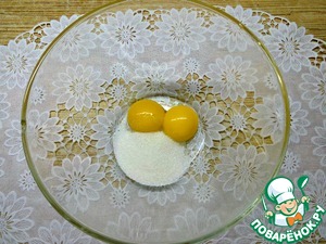 Отделить белки от желтков. Белки пока убрать в холодильник. Желтки взбить с 1 ст. л. сахара добела.