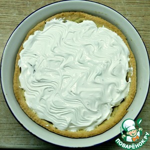 Сверху, с помощью кондитерского мешочка или ложки, выкладываем взбитый белок.