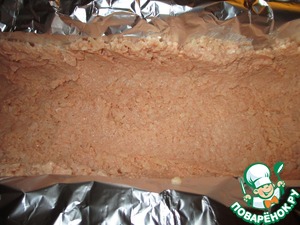 И так. Выложить примерно одну треть хлопьев с кефиром на дно формы и по бокам, разравнивая ложкой. Слой не менее 1 см. -