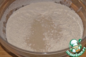 В большой миске перемешать просеянную муку с дрожжами и солью.