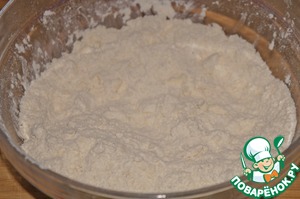 Добавить масло, порубить ножом или растереть руками в мелкую однородную крошку.