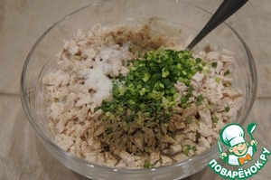 Посолить по вкусу, всыпать зеленый лук и все перемешать.