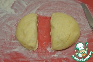 Тесто разделить на две части, одна из которых должна быть немного больше.