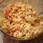 Предлагаю вам легкий, свежий салатик... пока еще не начались холода и на столе не появились сытные, согревающие салаты с майонезом.