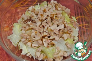 Добавить нарезанную курицу (подойдет любая: жареная, вареная, копчёная или даже куриный рулет или колбаса).