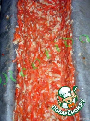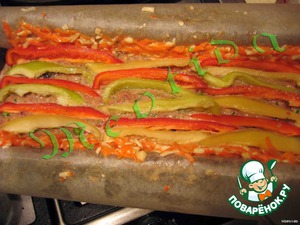 на него слой из стручкового перчика (слегка утопить)