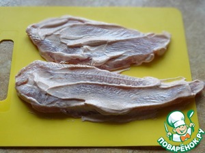 • На разогретом масле обжарить грудку с одной стороны, затем перевернуть.