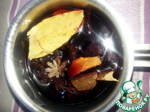 Пока готовится наш чудесный кролик В небольшой кастрюльке соедините чернослив, нарезанный кусочками, палочку корицы, лавровый лист и анис, залейте красным вином (его должно быть столько, чтобы лишь хватило покрыть чернослив), доведите до кипения, проварите 2 минуты и снимите с огня. Влейте бренди, перемешайте и отставьте в сторону. Я всегда делаю двойную порцию, обожаю эту намазку.