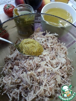 Когда конфи из кролика будет готов, снимите мясо с костей в отдельную миску и процедите оставшийся жир. Мясо лучше всего разбирать руками на волокна, так очень по- деревенски, собственно говоря, как и нужно. Отложите примерно треть мяса в сторону, а к оставшемуся добавьте ложку с горкой зернистой горчицы, приправьте солью и перцем и как следует размешайте. Затем про одной добавьте 3 ложки жира, в котором готовился кролик, каждый раз интенсивно перемешивая содержимое миски перед тем, как добавить следующую. За счет этого у вас образуется эмульсия, благодаря чему рийет приобретет сливочную консистенцию. Добавьте остальное мясо, проверьте рийет на соль и перец, затем переложите его в небольшие формочки или горшочки и уберите в холодильник.