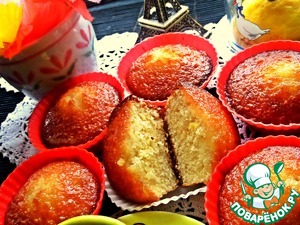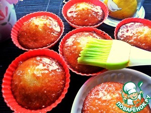 Наколоть верхушку каждого кекса зубочисткой и смазать сиропом обильно с помощью кисточки. Я прошлась 2 раза.