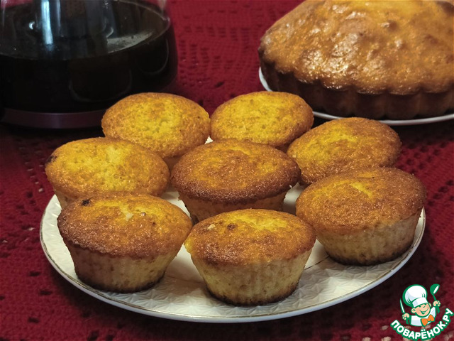 Такие кексы делала одна француженка, отмеряя продукты с помощью стаканчика от йогурта! Мне понравилась идея и рецепт и пошла повторять! Если нет такого стаканчика, просто отмеряем нужное количество в мл.