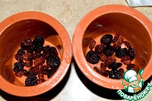 Формочки смазать растительным маслом и на дно выложить изюм.