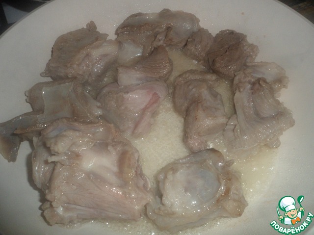 - Мясо (лучше всего баранина или говядина обязательно на косточке и/или с соединительной тканью ) — 1 кг