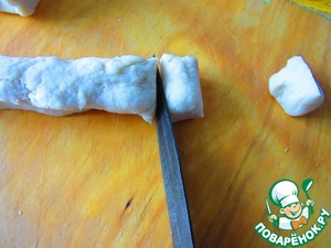 Тесто отдохнуло, начинаем лепить манты, тесто делим на части