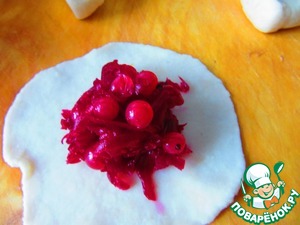 Свеклу отварную чистим, трем на средней терке и добавляем красную смородину ( можно и другую но без косточек) начинка для мантов готова