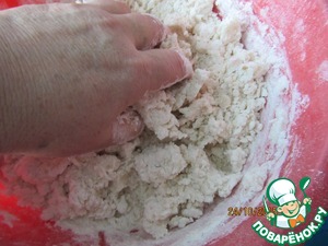 Теперь тесто замешиваем руками ( хорошо замешивать в резиновых перчатках, у меня руки терпят горячие)