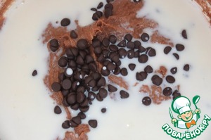 Добавляем горячее молоко (я разогревала в микроволновке) и шоколадные капли.
