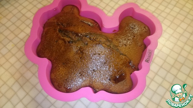 Зубочисткой делаем дырочки в кексе и обильно поливаем половиной сиропа, делаем это прямо в форме, пока кекс еще горячий.